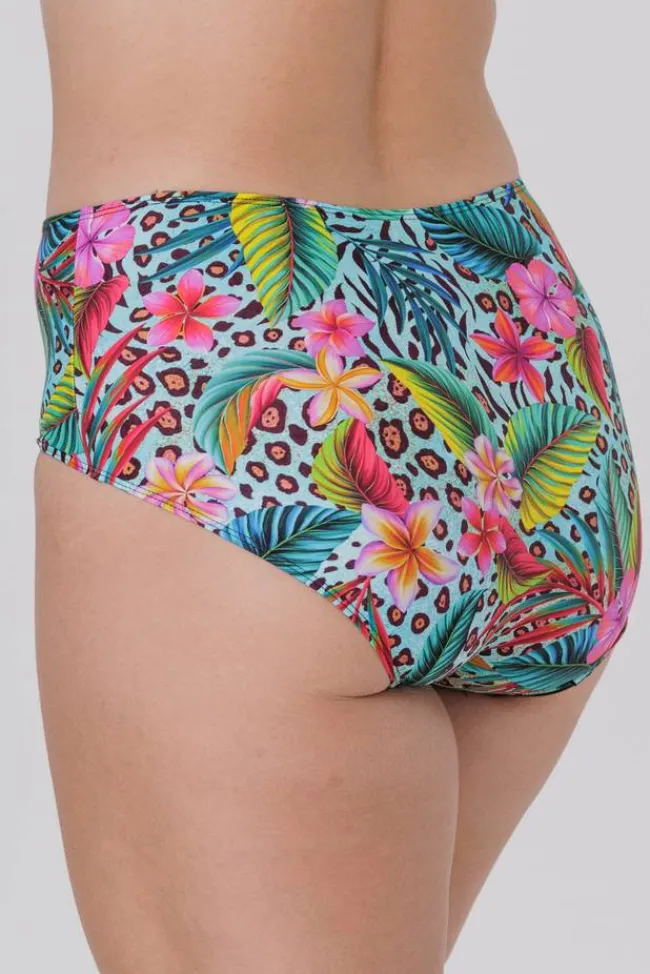 Bikini panty with perfect fit. Colourful animal and floral all-over print, front and back. Chlorine Resistant material makes the garment suitable for swimming pools. Mesh-lining at front adds asupportive and secure feel. Side seam 15 cm in size 42. Over 60 years’ experience making underwear is behind the fit. Lined crotch.