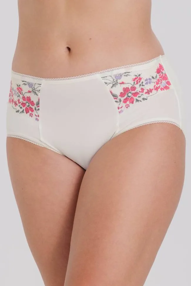 Elegant panties with lace detailing on the front. Smooth lightweight material that’s soft, flexible and highly comfortable. Soft elastic bands with a lace trim at the leg openings and waist. High waist, regular to low leg cut. Side seam 16 cm in size 42. Cotton-lined gusset.